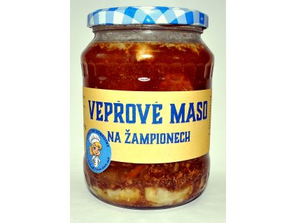 Dlouho pečené vepřové kostky, dochucené kmínem, hrubozrnnou hořčicí a nešetřili jsme žampiony. Doporučujeme konzervu nejdříve ohřát ve vodní lázni před další tepelnou...