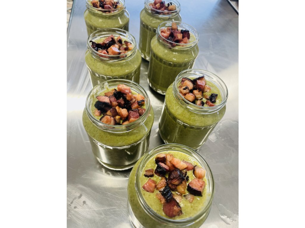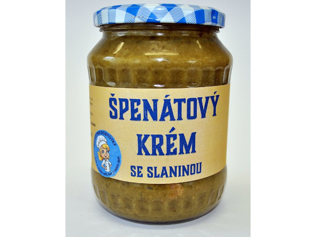 Složení: Špenát 22 %, smetana 20 %, kuřecí vývar 19 % (pitná voda 80 %, kuřecí hřbety 10 %, kořenová zelenina 8 %, koření do 2 % - libeček, celý pepř, česnek, cibule, nové koření, bobkový list, sůl), brambory 13 %, slanina 12 %, cibule 9 %, máslo 3 %, česnek 1 %, koření – sůl a pepř do 1 %.