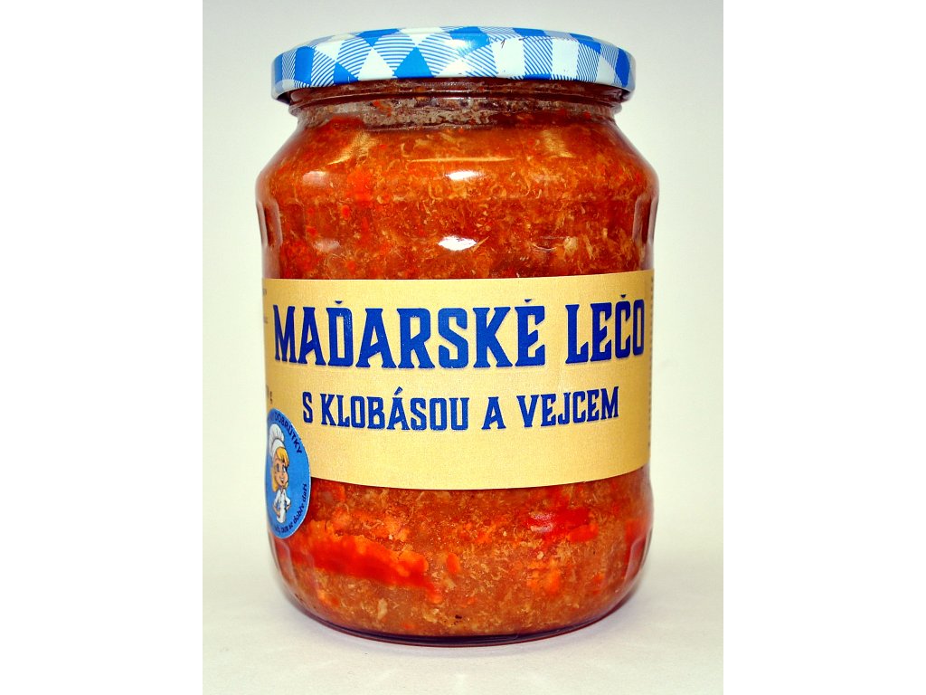 Složení: Hovězí vývar 30 % (pitná voda 80 %, morkové kosti 5 %, hovězí žebro 5 % %, kořenová zelenina 8 %, koření do 2 % - libeček, celý pepř, česnek, cibule, nové koření, bobkový list, sůl), klobása papriková 23 %, rajčata vařená 17 %, paprika vařená 11 %, vejce míchaná 10 %, cibule 7 %, vepřové sádlo 1 %, koření – sůl, paprika sladká, paprika pálivá do 1 %.