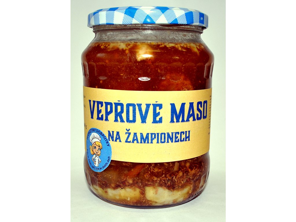 Složení: vepřová kýta pečená 34 %, vepřová plec pečená 32 %, žampiony 16 %, cibule 15 %, hořčice hrubozrnná 2 %, koření – kmín celý, sůl, pepř mletý do 1 %.